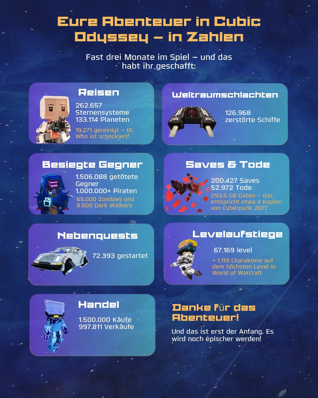 Eure Abenteuer in Cubic Odyssey in Zahlen!